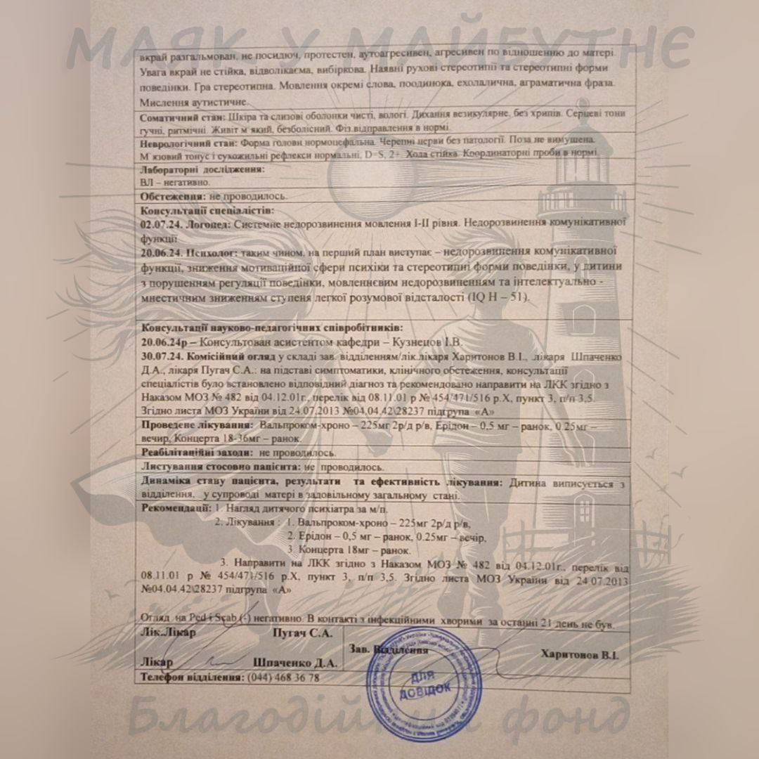Та попри всі ці удари, Владислав не здається. Він кожного дня робить свої маленькі великі кроки. Завдяки проведеному лікуванню він уже почав вимовляти слова, називати предмети, намагатися відповідати на запитання. Кожне нове слово — це маленьке диво, за яке його мама тримається обома руками.
